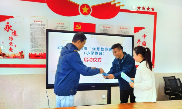 钱亢导师热情洋溢地接待了前来跟岗学习的学员们。在温馨而庄重的见面会上,钱亢导师与学员们进行了深入的交流,围绕市教育局对学员们提出的各项考核要求,详细地逐一明确了跟岗锻炼期间的学习计划和主要内容。通过这种细致入微的安排,每一位学员的跟岗学习都能落到实处,真正达到学有所获、学以致用的效果。不仅如此,钱亢导师还慷慨地赠予了两位跟岗教师他亲自撰写的著作——《乐动体育的实践与探索》。这本书凝聚了钱亢导师多年来的教学经验和研究成果,内容丰富、见解独到。钱亢导师希望通过此书能为他们提供不同的研究视角,为专业成长的道路点亮一盏明灯。