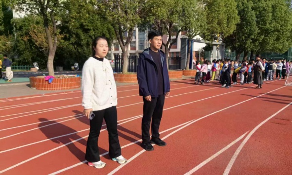 最后,钱亢导师带两位学员一起观摩了雕庄中心小学的大课间。大课间活动现场热闹非凡,学生们精神饱满地参与着各种体育项目。从活力四射的体能操,到充满趣味的体育游戏,每一个环节都展现出雕庄中心小学独特的体育文化氛围。钱亢导师一边观摩,一边为两位跟岗教师详细讲解大课间活动设计的初衷和目的,强调大课间不仅是学生锻炼身体的时段,更是培养学生团队协作精神、增强集体荣誉感的重要契机。两位跟岗教师认真聆听,不时提出自己的疑问和见解,与钱亢导师进行着深入的交流。这次观摩活动,让他们对“以体育人”理念在实际教学场景中的应用有了更为直观和深刻地认识。