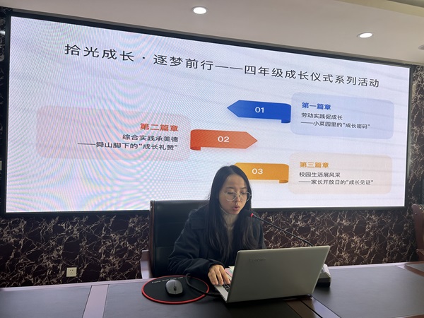 在“成长·礼赞”环节,学生成长中心丁莉老师详细解读了“四年级十岁成长仪式具体方案”。她指出,十岁是孩子成长过程中的重要节点,仪式不仅是对童年的告别,更是对未来的期许。希望通过精心设计的活动,让孩子们懂得感恩、树立理想,在集体中感受成长的温暖与力量。