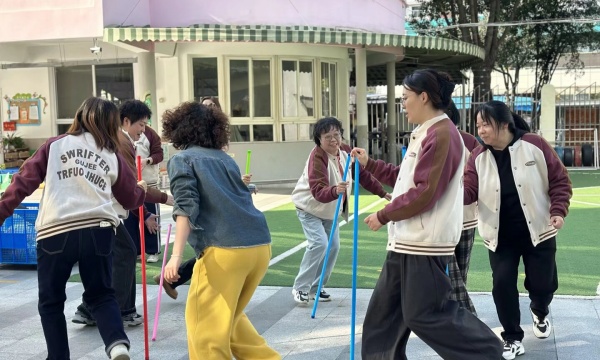 趣味游戏环节堪称“默契大考验”:“蜈蚣竞走”项目里,8人一组胸贴软球、同步移动,球落即停、协作复位,各小组在“慢中求稳”里比拼团队节奏;“急速三子棋”将传统棋类与奔跑结合,教职工们手持棋子冲刺摆放,在呼啦圈“棋盘”上竞速连线;“轨道传球”中,8人用绳柄搭成“井”形轨道,小球在平行轨道间精准传递,脚不能移、手不能碰的规则让现场叫好声不断;“不倒森林”里,塑料杆在圆圈中快速交接,连续1分钟无杆倾倒的小组默契值拉满。