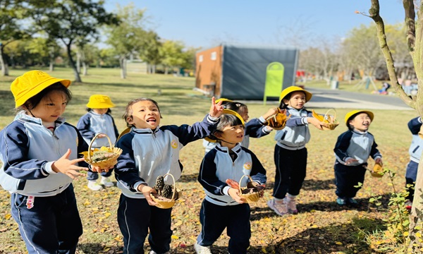 活动现场,孩子们在老师的带领下,围坐在铺满落叶的草地上,认真聆听纸杯花篮和纸杯风车的制作步骤。从裁剪纸杯、粘贴彩纸,到装饰花朵、固定扇叶,每一个环节都充满了乐趣。孩子们充分发挥想象力,有的给花篮贴上五颜六色的贴纸,有的用彩笔在风车上画出可爱的图案,还有的互相帮忙,合作完成作品,欢声笑语回荡在秋日的阳光下。