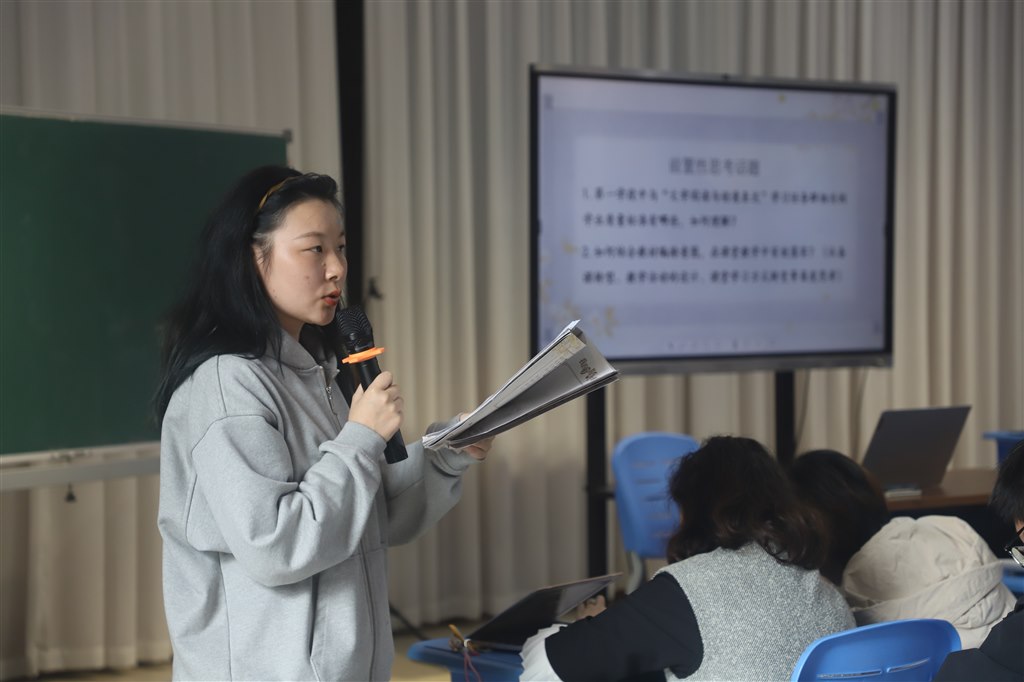 课堂展示环节结束后,与会教师围绕“如何理解第一学段中‘文学阅读与创意表达’学习任务群相关的学业质量标准”和“如何结合教材编排意图,在课堂教学中有效落实”这两个前置性思考话题,展开了富有深度的交互研讨。现场的老师们结合课例和自身教学实践进行了热烈交流。老师们积极发言,为教学研讨注入了更多专业视角与实践智慧。