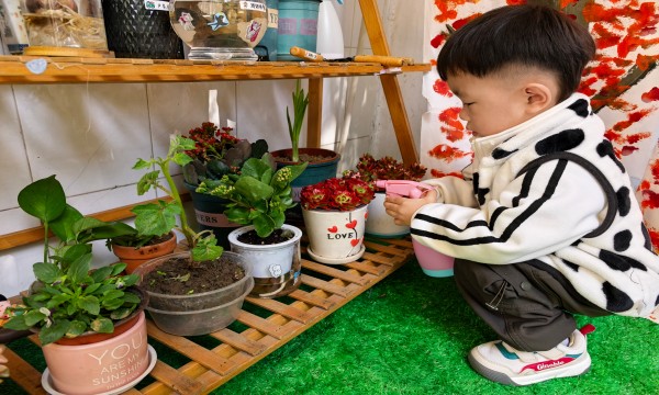 为了让小班孩子感受生命成长的奇妙,培养爱护植物、乐于探索的良好品质,小二班开展了“大蒜成长记”自然角照顾实践活动。自然角成了孩子们每日必打卡的“小天地”,他们会主动观察大蒜的变化,轮流为大蒜浇水、松土,还会轻轻抚摸嫩绿的芽叶,生怕惊扰了“小生命”。在日复一日的照料中,孩子们不仅见证了蒜瓣从发芽、长叶到抽苔的完整过程,更在实践中学会了耐心等待与责任担当。