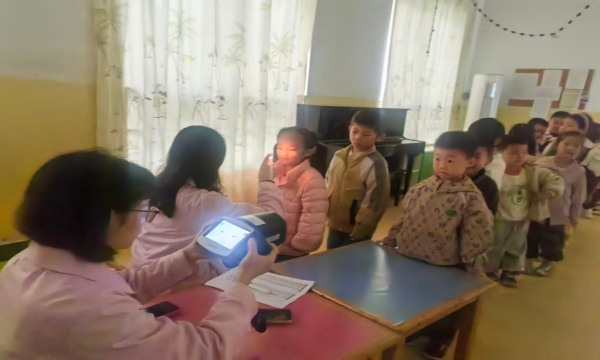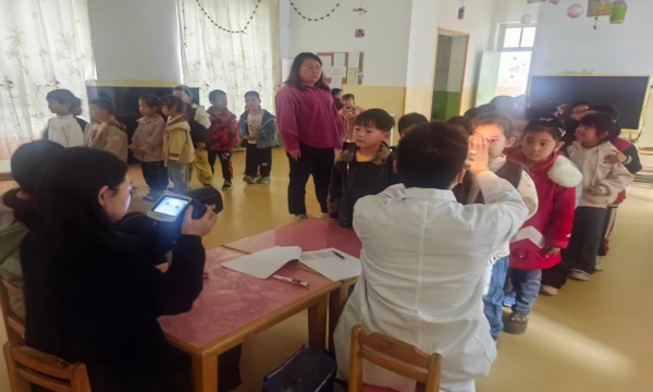 为给孩子们营造舒适的检查环境,幼儿园提前规划场地,妇幼保健的医生团队则迅速布置好筛查设备,将专业仪器整齐排列,确保每一项检查都能精准高效开展。筛查过程中,医生们凭借先进的视力测查仪器与科学的检测手段,对幼儿的视力状况进行逐项排查,孩子们也井然有序的在老师的带领下依次排队接受医生的各项检查,同时,医生们实时记录下每位幼儿的视力情况,为后续评估与指导留存完整依据。