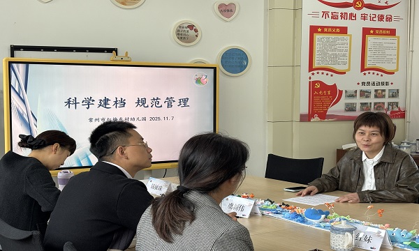 2025年11月7日上午,杨红妹局长一行四人莅临我园——常州市红梅东村幼儿园,就幼儿园档案室的规范化建设与管理工作进行了专项视察与指导。园长薛辉及园务班子成员全程陪同。