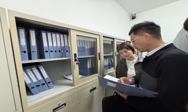 视察组一行直接深入幼儿园档案室,进行了实地查看。领导们细致翻阅了园所的行政管理、教学科研、及资产财务等各类档案资料。视察过程中,虞新伟主任不时提问,详细了解档案的收集、分类、归档、保管及借阅流程,并对电子档案与纸质档案同步管理的实施情况表示了高度关注。