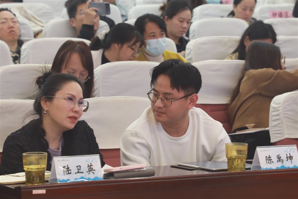 随后,常州市局前街小学沈虹副校长做了《一致性视角下除法教学的实践探索》的主题汇报,他从四个关键维度展开深入阐述:一是剖析“为何聚焦除法教学‘一致性’”,明确新课标下运算教学的核心要求;二是强调“明晰除法运算本质,奠定一致性教学根基”,帮助教师把握除法教学的底层逻辑;三是解读“除法一致性的核心内涵”,厘清教学实践的方向;四是提出“聚焦算法迁移,实现整数、小数、分数除法算法的一致性”,为教师构建系统化的除法教学体系提供具体路径。