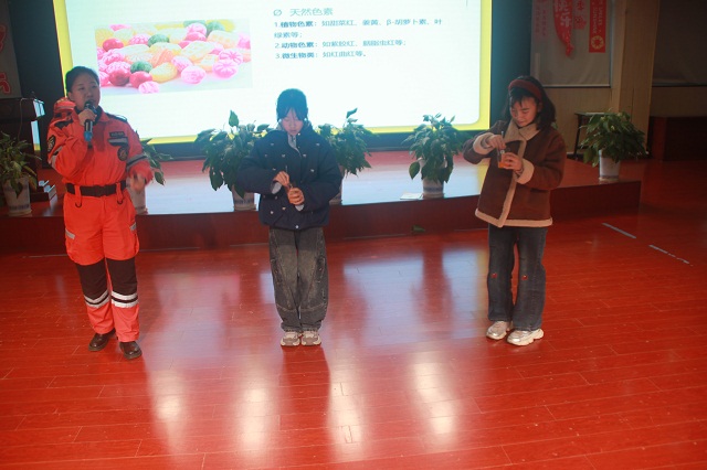 食品安全环节,讲师以“九字法”为核心展开教学,通过图文视频详细讲解“一防低小”“二防生”“三防脏”等实用知识。同时结合食品添加剂知识,展示天然色素与人工色素的区别,邀请学生参与辨别游戏,在问答互动中让大家掌握辨别不安全食品的技巧,树立健康饮食观念。