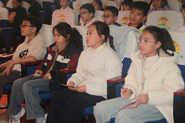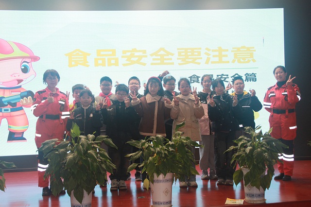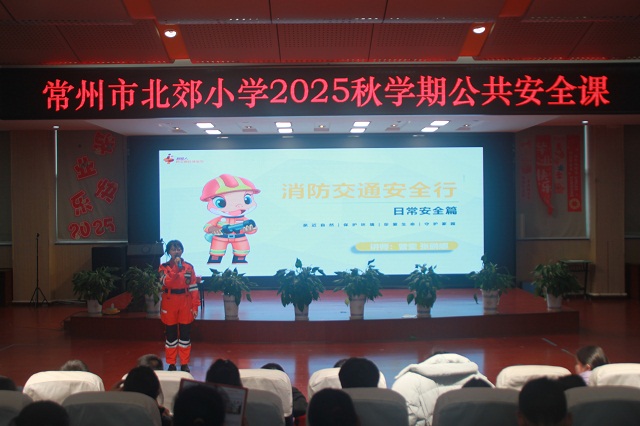 为全方位提升学生安全素养,2025年秋学期,常州市北郊小学开展公共安全课。11月17日,常州中华恐龙园防灾避险体验馆的工作人员走进校园,为全体五年级学生带来了一场生动有趣的公共安全课。两位讲师通过视频、示范、事例及互动等丰富形式,将消防、交通与食品安全知识生动传递,为孩子们的健康成长筑牢安全防线。