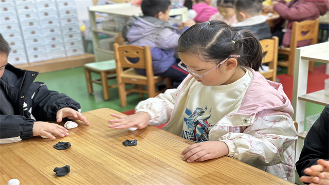 为了让孩子们感受手工创作的乐趣,加深对国宝大熊猫的认知与喜爱,2025年11月19日星期三上午常州市天宁区翠竹幼儿园大一班的孩子们在活动室开展了“超轻粘土制作大熊猫”主题美术活动。