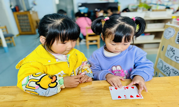 在幼儿园中班,扑克牌成为了孩子们探索世界的趣味载体。2025年11月20日,教师结合中班幼儿的发展特点,设计了比大小、排序列等多样的扑克游戏,让孩子们在辨认数字、比较大小、排列顺序的过程中,直观地理解数的概念、发展逻辑思维,原本抽象的数学知识在扑克游戏里变得生动可玩。