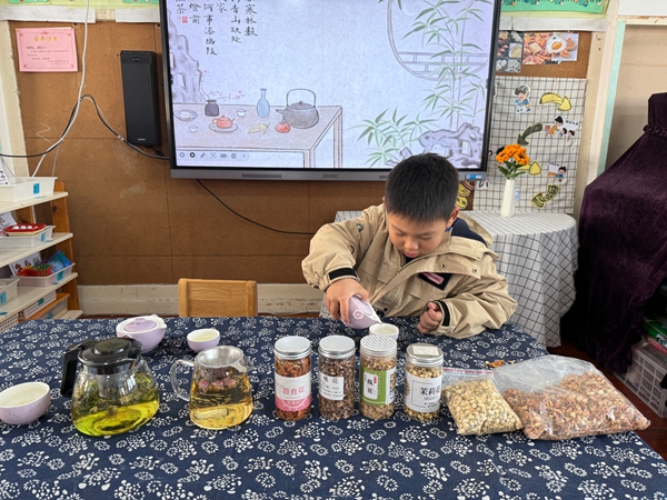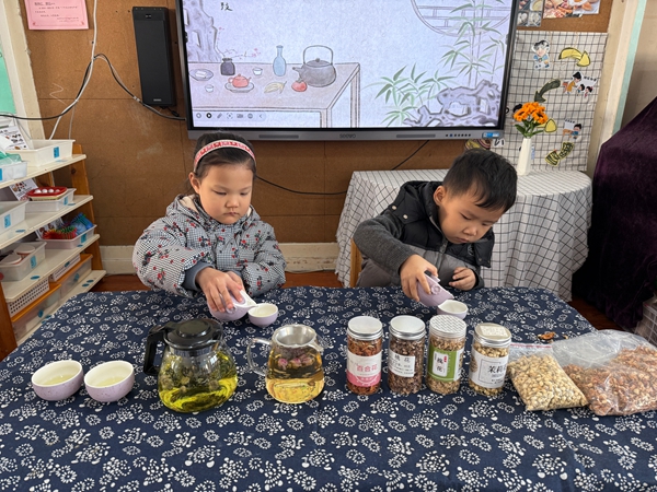 为丰富幼儿生活体验,传承传统茶文化中的礼仪与雅致,11月19日,大一班开展了"品花茶"主题班本课程活动。孩子们在看一看、闻一闻、泡一泡、尝一尝的沉浸式体验中,解锁干花奥秘,学会倒茶礼仪,感受传统文化的独特魅力。