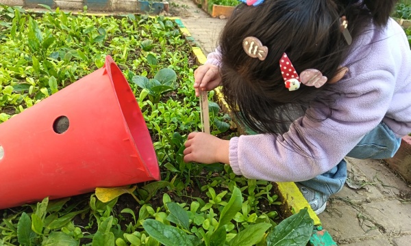 活动中,教师带领孩子们来到种植区,孩子们手持测量工具,小心翼翼地为每一株菠菜苗“量身高”。“这棵菠菜苗有10厘米啦!”“我种的这棵比上周长高了3厘米!”孩子们兴奋地分享着测量结果,并用画笔在观察手册上记录下菠菜苗的生长数据和形态变化。同时,教师结合冬季气候特点,用生动的绘本和实物教具,向孩子们讲解了菠菜苗的养护知识,引导他们为菠菜苗浇水、松土,感受植物生长与环境的密切关系。