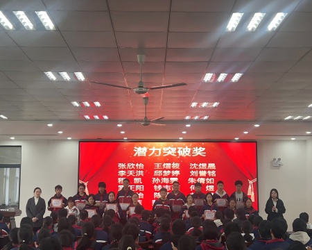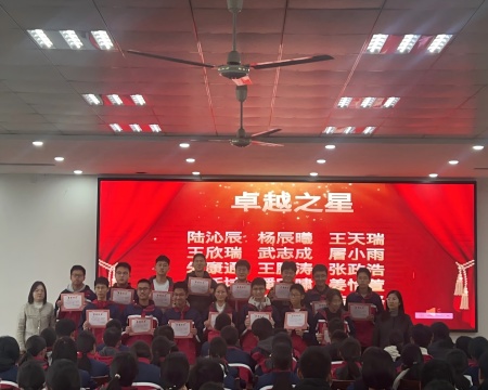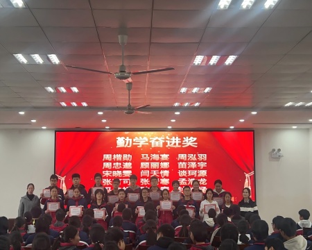 大会在庄严的国歌声中拉开帷幕。主持人宣读表彰决定,“潜力突破奖”“勤学奋进奖”“卓越之星”“飞跃之星”等多个奖项逐一揭晓,各班优秀学子依次登台,从老师手中接过奖状。台下掌声阵阵,见证这一荣耀时刻。