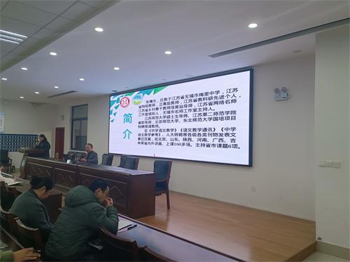 讲座在热烈的掌声中拉开帷幕。陆群老师致欢迎辞。她介绍了张增光老师的学术成就,对张增光老师的到来表示衷心的感谢,并强调课堂教学是教育的主阵地,希望全体教师珍惜此次与名师面对面交流的机会,潜心学习,深刻反思,将先进的教学理念内化于心、外化于行。