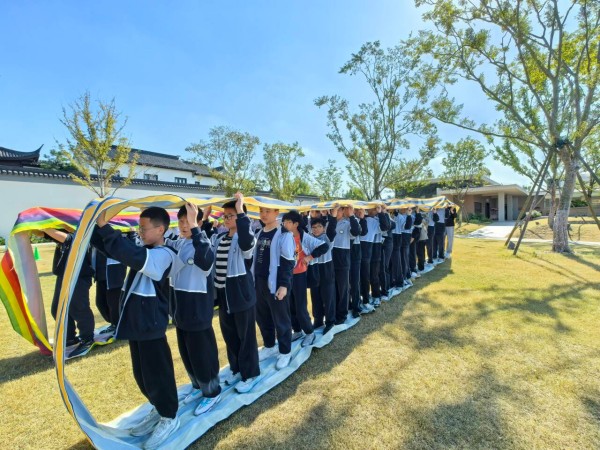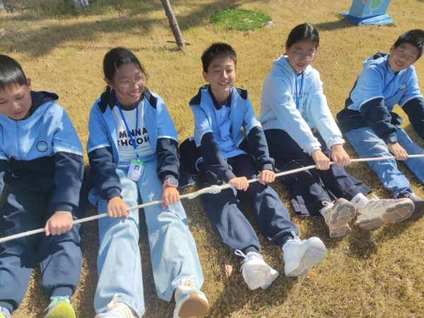 晨光初露,赴舜山小镇的车队满载欢声笑语启程。在季子广场,七年级学生通过沉浸式演艺领略先贤风范,感悟历史厚重;在拓展环节,“坦克大战”中男女生精准配合、接力冲锋,“动力神圈”里众人齐力摇绳、同心同步,生动诠释了“心往一处想、劲往一处使”的团队精神。小组自主探索期间,学生分工协作、互助前行,让团结的种子在互动中扎根,青春的活力在协作中绽放。