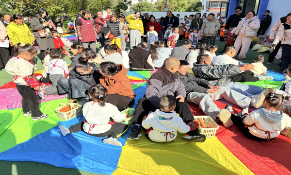 “赶鸡进笼”“运红薯”“南瓜滚滚”“拔萝卜”等趣味项目接连上演,既有亲子协作挑战,也有幼儿团体比拼。孩子们奋勇争先,家长们默契配合,赛道上满是奔跑的身影与欢快的呐喊,秋日丰收元素的融入让游戏更具童趣。