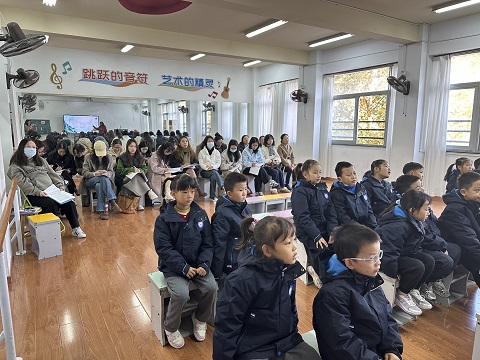 冬阳和煦,银杏鎏金。为促进青年教师专业成长,助力新教师教学能力提升,11月26日上午,天宁区二实小、解小音乐学科联合教研活动在解放路小学举行。在解小音乐课题组的精心指导下,两位解小青年教师通过多轮磨课,共同打造了富有创意且特色鲜明的音乐展示课。来自二实小、解小联盟校、市级课题《具身认知视角下儿童歌唱教学的实践研究》组员和音乐教师共同参与此次活动。本次活动聚焦具身认知理论与AI技术在音乐教学中的创新应用,通过课例展示、专题讲座和课题研讨三个环节,探索音乐教学新样态。