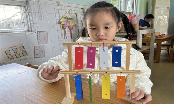 活动前,教师提前引导幼儿观察生活中的声音,收集各类废旧材料——塑料瓶、纸盒、吸管、豆子、毛线等。完成制作后,一场热闹的“自制乐器演奏会”正式上演。孩子们手持亲手制作的乐器,跟着音乐节奏轻轻晃动、敲击,沙锤的沙沙声、摇铃的叮当声、排笛的呜呜声交织在一起,形成了独特又悦耳的旋律。大家在演奏与互动中,不仅体验到了音乐的快乐,更增强了自信心与合作意识。
