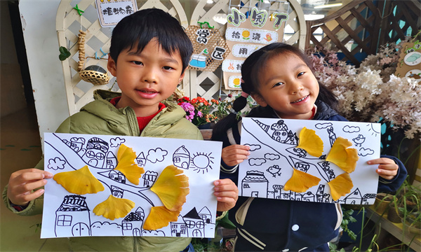 活动从一场快乐的“寻宝”开始。孩子们在铺满金黄落叶的草坪和道路上,仔细地寻找、挑选自己心仪的银杏叶。“我找到了一把最黄的小扇子!”“我的这片像小裙子!”欢呼声充满了整个校园。随后,这些大自然的礼物被带进了美术课堂。孩子们发挥无限创意,运用添画的方式,让银杏叶焕发出全新的艺术生命,一幅幅充满稚趣与想象的作品跃然纸上。