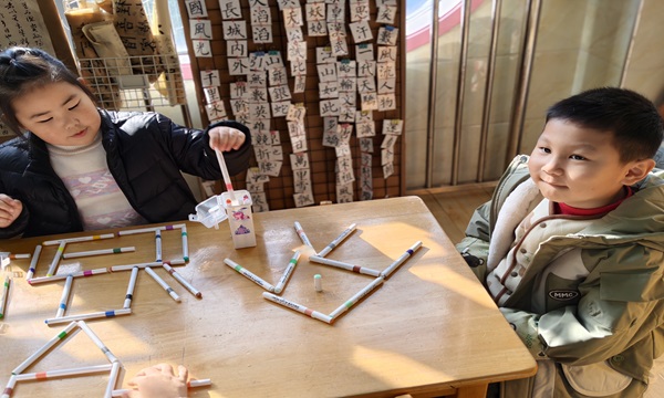 活动现场阳光正好,孩子们围坐桌前,拿起色彩各异的马克笔专注创作:有的独自拼接出几何图形、小房子,指尖的动作认真又细致;有的和同伴小声商量,合作搭出小动物、花朵的轮廓,活动室里不时传来分享的欢笑声:“你看我的‘小飞机’翅膀稳不稳?”“我们的‘星星’马上就拼好啦!”马克笔的色彩与孩子们的笑脸相映,每一个造型都藏着独有的巧思。