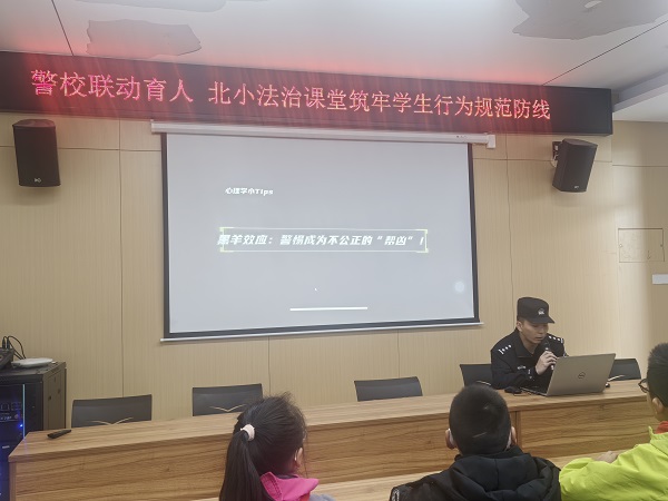 为强化学生规则意识与法治观念,近日,常州市北环小学携手红梅派出所开展警校联动法治教育活动。红梅派出所民警李警官受邀走进中高年级课堂,以专业视角与生动形式,为学生们带来一堂直击问题、注重实效的法治课,筑牢学生行为规范与校园安全防线。