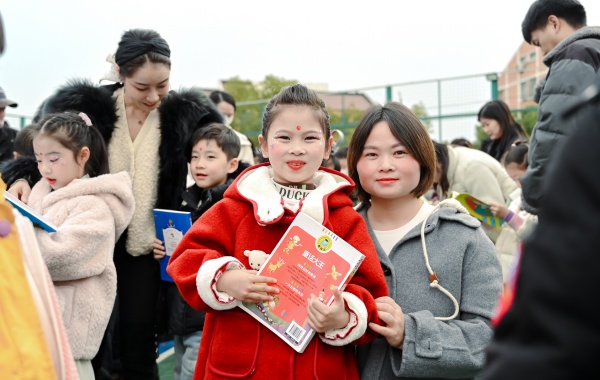 最令人动容的当属“亲子赠书”环节。家长们手捧精心准备的书籍,轻轻走到孩子身边,将饱含爱意的礼物递到孩子手中,再送上一个温暖的拥抱。孩子们迫不及待地翻开书页,寻找爸爸妈妈写下的专属悄悄话,有的孩子还当场读出父母的寄语,感动的泪水与幸福的笑容在现场交织。