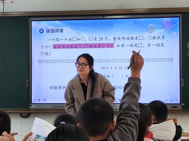 施老师设计“圈一圈”操作活动,引导学生通过两两配对的方式,亲身经历从具体排列到数量关系的推导过程,自主发现“两端相同则数量相差1,两端不同则数量相等”的核心规律。课堂尾声,通过“男女生间隔排队”游戏,学生自然地将问题从直线排列延伸至环形排列,在互动中主动建构“环形间隔排列中两种物体数量相等”的新知,真正实现了在体验中学习、在探究中成长。