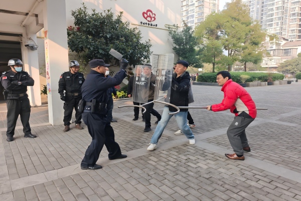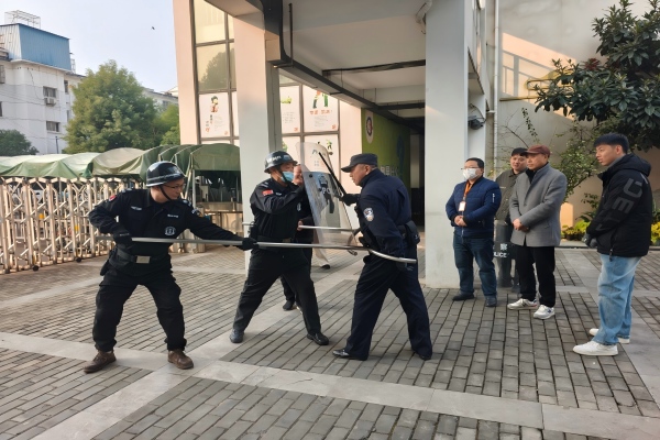 汤警官指出,校园最小应急单元是应对突发事件的“第一道防线”,教职工需明确自身在应急处置中的角色定位,熟练掌握初期处置的关键环节。汤警官通过情景模拟、装备演示等方式,重点传授了防暴钢叉、盾牌、警棍等防护器械的规范使用方法,并组织参训人员分组进行“暴徒闯入”、“突发事件控制”等场景的实战演练。