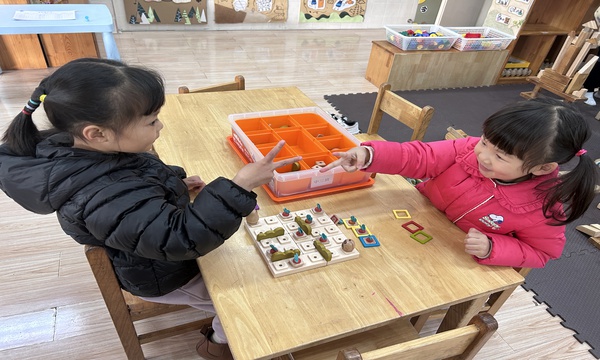 “我的农场里有番茄!”“黄色格子能多走两步!” 12月22日,常州市广化幼儿园中三班的活动室里,益智区与建构区的欢笑声此起彼伏——孩子们正用益咕材料解锁创意游戏,把小木块、造型模块变成了 “农场” 与 “棋盘”。