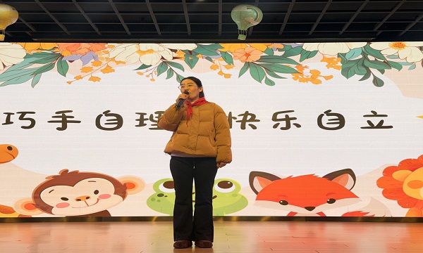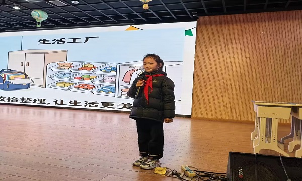 活动中,二3班同学走上前,分享“为何要学会整理”。从“让生活更有条理”到“能让自己更自信”,质朴话语传递对“自理”的理解,也让大家明晰:自理,是成长路上的“必修课”,能点亮独立生活的底色。