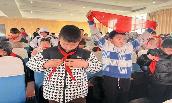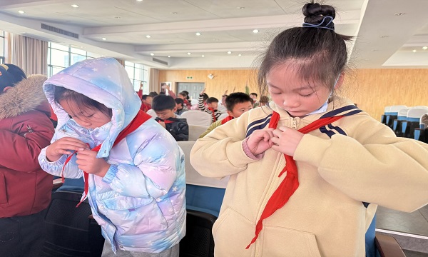 系红领巾比赛率先点燃热情。“预备开始!”指令落下,同学们手指翻飞,快速完成红领巾折叠、佩戴,动作规范又利落。“系得又快又好!”当整齐的红领巾在胸前飘扬,小选手们收获掌声,也在比拼中夯实基础技能。