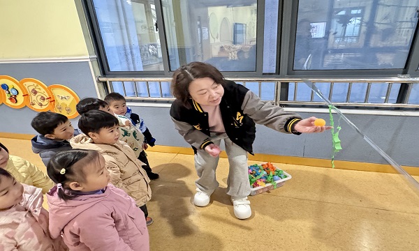 为了让幼儿更好地了解我国传统节日,体验元旦的喜庆氛围,常州市天宁区清凉新村幼儿园托班于2025年12月29日,开展了“萌娃贺岁 趣享年味”系列主题活动。在欢快的《张灯结彩》音乐声中,活动缓缓展开序幕。活动在欢快的音乐声中展开,孩子们通过身体语言表达了对音乐的理解,气氛热烈。孩子们在老师的带领下,手持小沙锤,随着音乐节奏摇摆,用身体语言尽情表达对这首歌曲的理解。