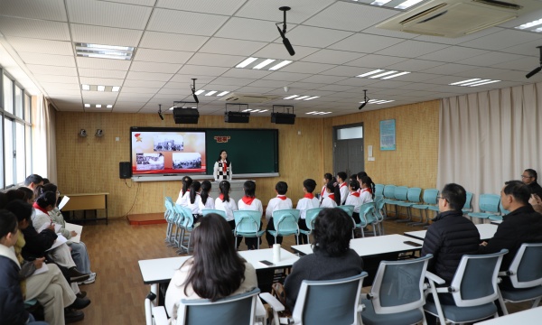 录播教室中,一堂由党员教师伍珈宁带来的、充满仪式感与教育意义的微队课《国歌响“起来”》精彩呈现,让参会的领导、书记和党员们走进了国歌背后的峥嵘历史,和少先队员们一起解读“起来”二字承载的奋进力量,动容于孩子们畅想 2035 年国歌唱响的壮阔场景。看着队员们在具象化的体验中,一点点读懂国歌的精神内核,真切感受到红色教育落地生根的力量,激发了在场每一位参与者的爱国情怀,也生动诠释了党团队血脉相连、薪火相传的政治引领与组织育人实效。