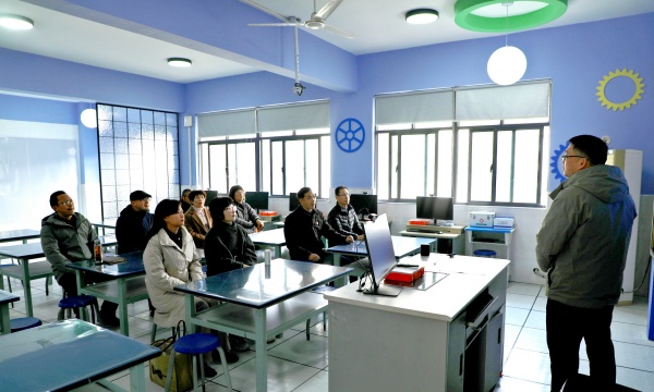 人工智能科学实验室里,学校副书记、副校长芮清向各位书记和党员展示了由 AI 科学实验室、智慧校园气象站、智慧天文站构成的“人工智能 科学实验站”的建成和使用情况。兼具跨学科、广覆盖、可迭代、全赋能、低成本五大特点的实验站满足各学科开展学科实践与跨学科学习需求,覆盖 1-6 年级,依托国产开源硬件和教育智能体实现软硬件迭代,赋能学校科学课程高质量实施。在这里,现代化的科技设备与学生们的创新项目相映成趣,充分展示了学校在融合科学教育与素质教育、面向未来培养人才方面的积极探索,体现了教育现代化发展的鲜活实践。