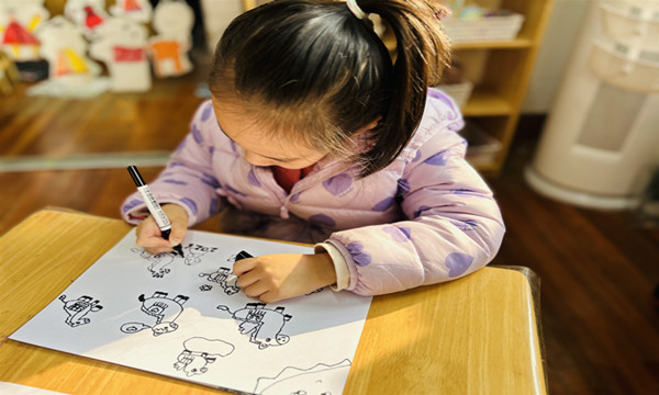 活动中,老师先通过趣味讲解,让孩子们了解了2026年是马年,以及年历上月份、日期的小知识。随后,孩子们化身小小设计师,拿起彩笔、贴纸,在年历模板上尽情创作:有的画出憨态可掬的小马,有的点缀红彤彤的灯笼和鞭炮,还有的写下“平平安安”“开开心心”的新年祝福。一笔一画间,不仅展现了孩子们天马行空的想象力,更饱含着对新年的美好期盼。