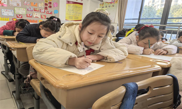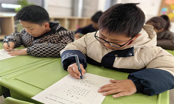语文学科的活动现场弥漫着浓郁的墨香,“笔画小能手”“钢笔字书写”“写作小达人”“非连文本解读”等各个板块都别具特色。云娃们端正地坐在课桌前,腰背挺直、目光专注,笔下的横竖撇捺工整,流淌着汉字的韵律之美。笔墨流转间,孩子们不仅巩固了语文知识,更提升了人文素养,以书香为新年增添了一抹亮色。