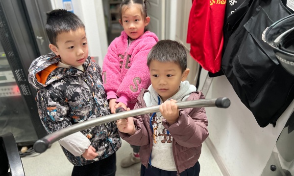 “这个盾牌好厉害,能保护我们不受伤!”“钢叉原来是用来制止坏人的呀!”孩子们你一言我一语,兴奋地分享着自己的发现。胆大的孩子还在保安叔叔的指导下,小心翼翼地触摸、拿起防暴装备进行体验:有的孩子双手扶着防暴盾牌,感受着它的厚重;有的孩子尝试握住防暴钢叉,模仿着保安叔叔演示的动作,亲身感受装备的使用方式。