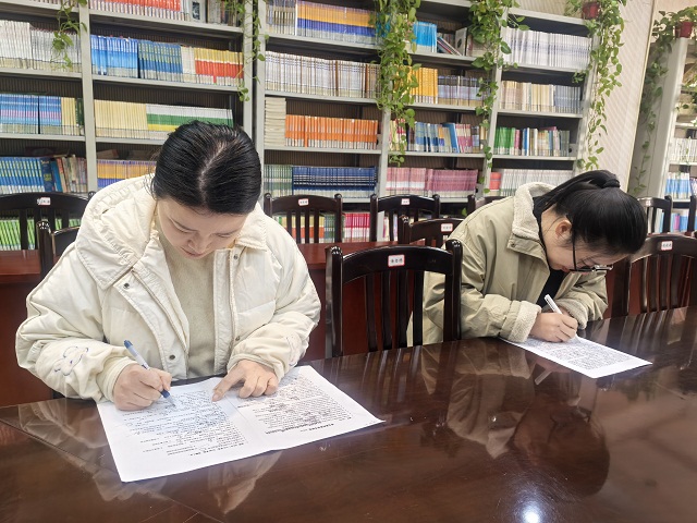 备赛伊始,第一阶段笔试备战便紧锣密鼓展开。为帮助两位教师夯实知识基础、提升答题能力,李霞老师主动扛起出卷改卷重任,结合区赛笔试范围,精心编制多套模拟试卷,涵盖《2022版语文课标》、统编教材知识点、文学常识、古诗词积累等客观题型,以及案例分析、作文等主观题型。每次模拟考试后,李霞老师都会逐题细致批阅,针对性指出答题漏洞,与教师共同复盘错题,助力她们精准强化薄弱环节。两位教师严格按照培训计划,每日精读课标、梳理教材,坚持积累古诗词与文学常识,在专项练习与模拟测试中稳步提升笔试能力。