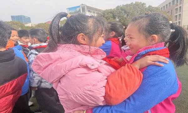 随后的“优点大轰炸”游戏更是将现场氛围推向高潮。孩子们闭上眼睛,在心里默默找寻身边同学的闪光点,随着周老师一声“三、二、一”,校园里立刻响起此起彼伏的赞美声:“你跑步超快的!”“你画画特别好看!”“你总是愿意帮同学讲题!”孩子们面对面竖起大拇指,有的还热情地拥抱彼此,一张张笑脸上写满了被认可的喜悦与真诚赞美他人的温暖。周老师笑着总结:“发现别人的优点是了不起的本领,真诚的赞美能让我们的校园充满正能量!”