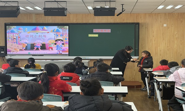 活动伊始,董佳老师执教《词语叠叠乐》复习研讨课。课堂上,董老师创新创设“数字人带领学生探秘词语魔法屋”的趣味情境,以闯关形式引导学生系统复习拟声词、动词及表示颜色的词语,并注重知识的拓展运用,引导学生将积累的词语融入句子创作,让语言表达更生动鲜活。整堂课设计精巧、环节丰富,通过给文章配音、动词情景演绎、词语灵活运用、句子拓展写作等多样化教学环节,让学生在轻松愉悦的氛围中巩固知识、提升能力,充分展现了复习课的趣味性与实效性。