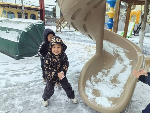 踏入雪地的瞬间,孩子们的欢呼声此起彼伏,兴奋与激动写满脸庞。他们尽情感受着雪带来的乐趣,争先恐后地和雪来一次“亲密接触”,有的小朋友小心翼翼地捧起松软的雪花,高高扬起手臂,任雪花在阳光下簌簌落下,感受“雪花雨”的浪漫;有的三五结伴开展趣味打雪仗,小小的雪球在同伴间传递,追逐奔跑的身影穿梭在雪地中,笑声传遍幼儿园的每个角落;还有的专注地堆着雪球,双手搓揉间,一个个小小的圆滚滚的雪球逐渐成型,脸上满是认真与成就感。孩子们眼底的兴奋,灿烂的笑容与白雪相映成趣,成为幼儿园里最动人的风景。