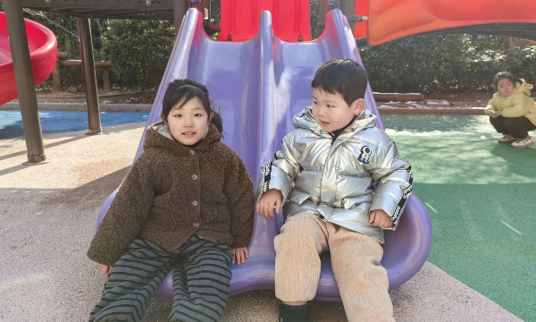 在色彩缤纷的滑梯旁,孩子们两两结伴坐着,享受着午后的温暖阳光;在攀爬架前,他们或扶着木梯露出灿烂笑容,或手脚并用地向上攀登,小小的身影里满是勇气与活力。在悬挂梯挑战中,孩子们紧紧抓住木质踏板,在摇晃间努力保持平衡,欢笑声与加油声交织在一起,让整个操场都洋溢着快乐的气息。