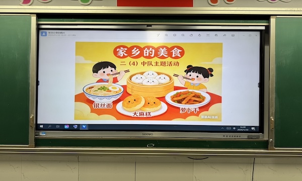 最热闹的就是互动环节啦!张老师准备了有趣的家乡美食小问答,大家高高举起小手,积极抢答,教室里满是欢快的笑声。在问答和小游戏中,同学们更了解家乡的美食,也更爱自己的家乡了。