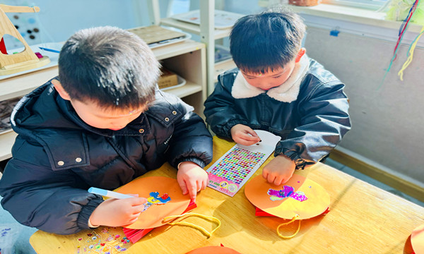 孩子们在老师的指导下,用卡纸、亮片等材料制作小马挂件,有的粘贴亮片装饰,有的用彩笔勾勒细节,一个个憨态可掬的小马挂件在指尖诞生。完成后,孩子们兴奋地展示作品,还将挂件挂在教室装饰树上或准备带回家送给家人。