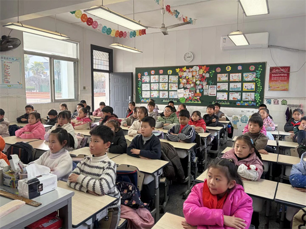 走进各班级教室,温馨的氛围扑面而来。低年级课堂上,班主任们以绘本故事、动画短片为切入点,围绕“合理安排作息”“安全自护小常识”“情绪小怪兽管理”等内容展开教学。在“我的假期小规划”环节,孩子们用彩笔绘制出寒假心愿清单,有的写下“每天阅读30分钟”,有的计划“帮爸爸妈妈做家务”,还有的期待“和小伙伴安全玩耍”,在动手实践中学会有序规划假期生活。班主任还通过情景小游戏,引导学生识别假期中可能出现的孤独、焦虑等情绪,教授“深呼吸放松法”“倾诉小技巧”等简单实用的情绪调节方法,让孩子们在轻松愉悦的氛围中学会关爱自己。