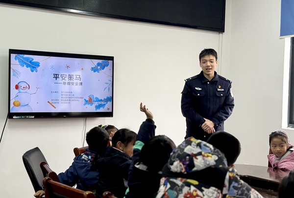 活动开始,“马到成功”成语接龙迅速活跃了现场氛围。孩子们踊跃抢答,思维敏锐,接龙失败的孩子模仿马奔跑时憨态可掬的模样,引得众人欢笑连连。随后开展的是“平安策马”寒假安全课,公安辅导员——片区民警结合实际案例,生动地讲解了防火防电、交通安全、防拐骗等方面的知识,并通过互动问答的方式巩固要点,孩子们纷纷举手抢答,安全意识在轻松愉悦的氛围中得到了显著增强。