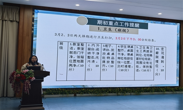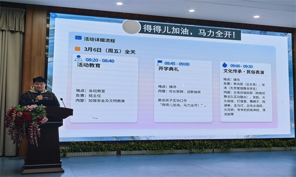 会议伊始,各部门负责人依次登台,围绕新学期工作计划与开学各项工作进行详细部署。各部门立足学校“让每个儿童都向上生长”的育人理念,结合部门职能,从教学教研、德育培育等多个维度,清晰梳理了新学期的工作重点与推进路径,既有严谨细致的安排,也有务实创新的举措,为新学期各项工作的有序开展筑牢根基、明确航向,凝聚起各部门协同发力、共促发展的强大合力,让每一位教师都对新学期的工作心中有底、肩上有责、行动有向。