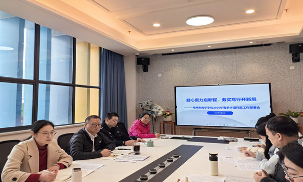 春启新章,万象生辉。新学期伊始,为统一思想共识、明确目标任务、压实工作责任,全面推进学校各项工作高质量开展,2026 年 2 月 28 日,常州市光华学校隆重召开 2026 年春学期行政工作部署会。全体行政人员精神饱满、齐聚一堂,学校财务人员王丽娟、法治副校长(兰陵派出所民警吴君)受邀参加会议。