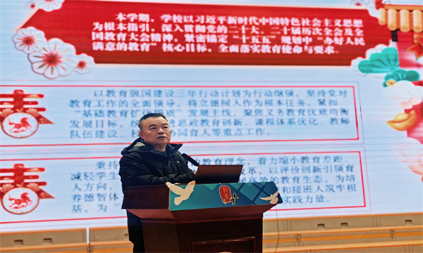 芮书记首先对寒假工作进行全面复盘。学校坚持校园安全不松懈,严格落实校园封闭管理,全面排查整改安全隐患,强化师生安全教育与网络安全防护,筑牢假期安全防线;深入开展关爱师生送温暖行动,校领导带队探望病困退休教师,组织教师家访特困学生,让温暖与关怀直抵人心;各部门提前谋划、早做准备,利用寒假开展研讨规划,完成新学期教师招聘、开学活动策划及后勤保障筹备,为顺利开学奠定坚实基础。